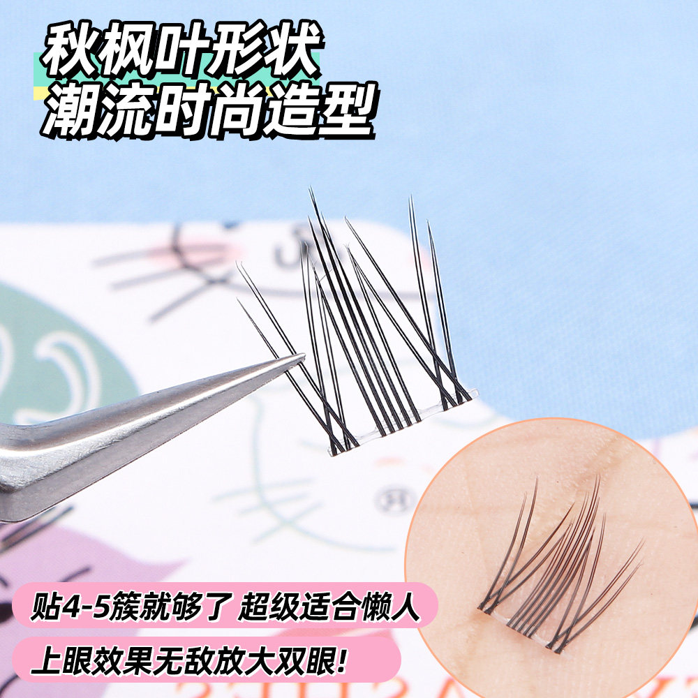颖睫秋枫叶无痕透明梗单簇假眼睫毛自然逼真裸妆浓密款素颜学生