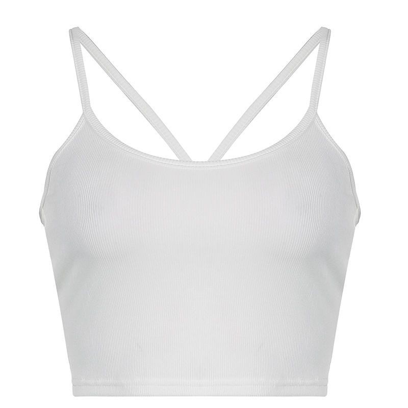 ins欧美纯色简约露背性感交叉吊带背心女夏季修身短款打底上衣潮