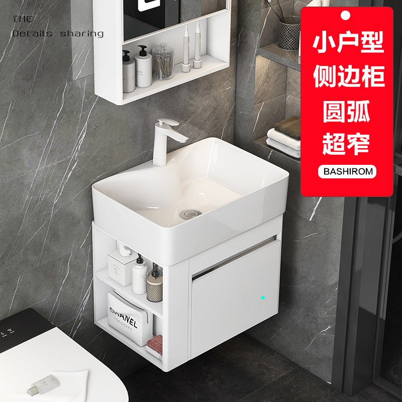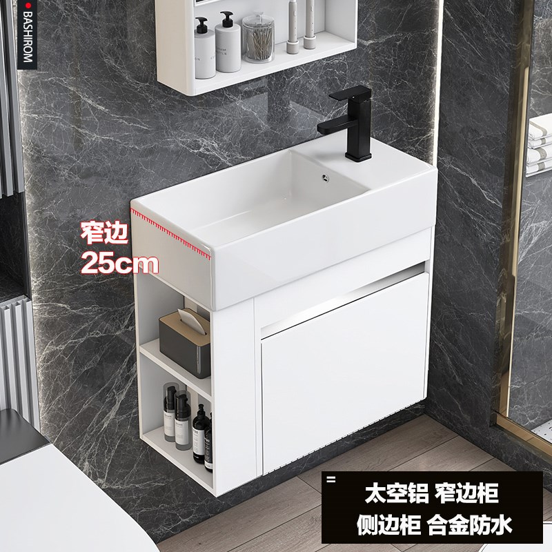 太空铝侧边收纳浴室柜小户型圆弧洗脸洗手盆柜组合一体窄边洗漱台