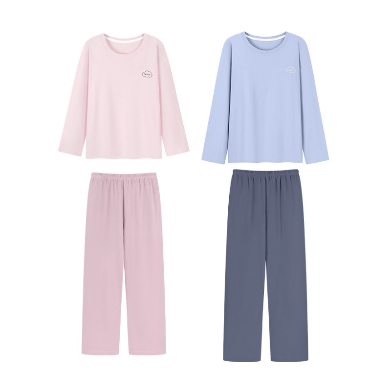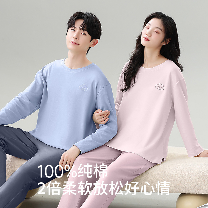 芬腾情侣纯棉睡衣男精梳棉春夏季2025新款长袖套头圆领女士家居服