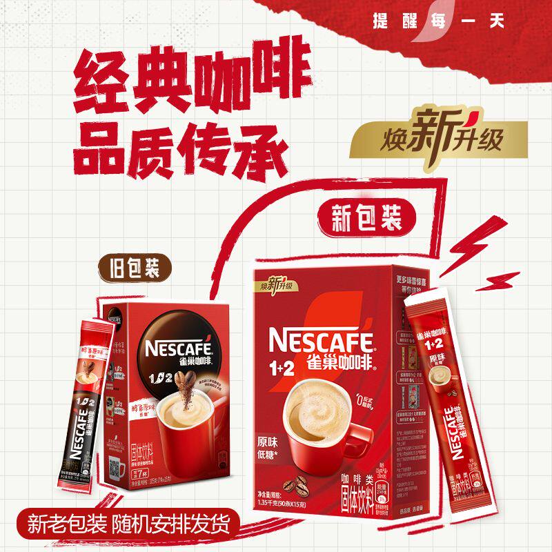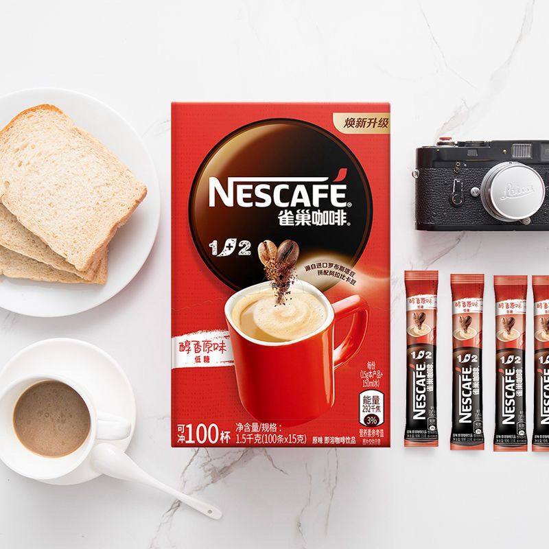 Nestle雀巢咖啡1+2原味三合一速溶咖啡粉100条装咖啡雀巢1500g
