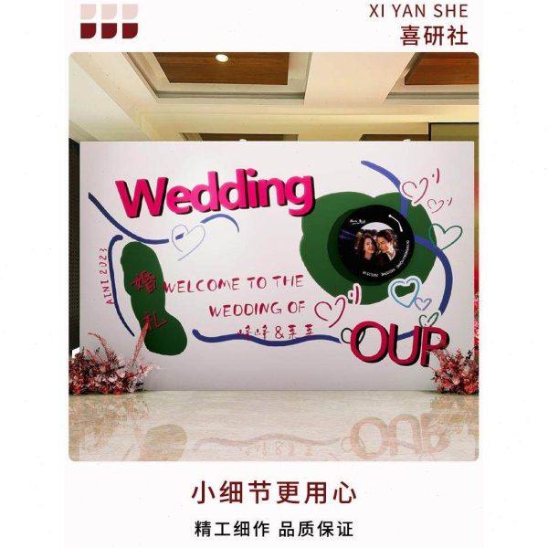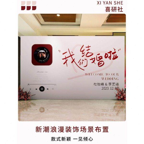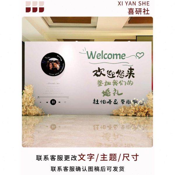 复古唱片机订婚宴布置装饰迎宾结婚留影区求婚kt板定制场景背景墙