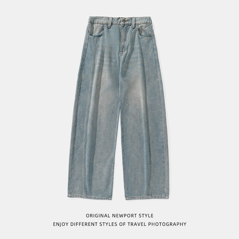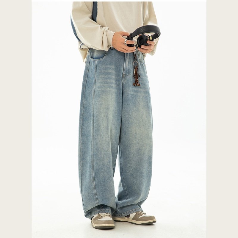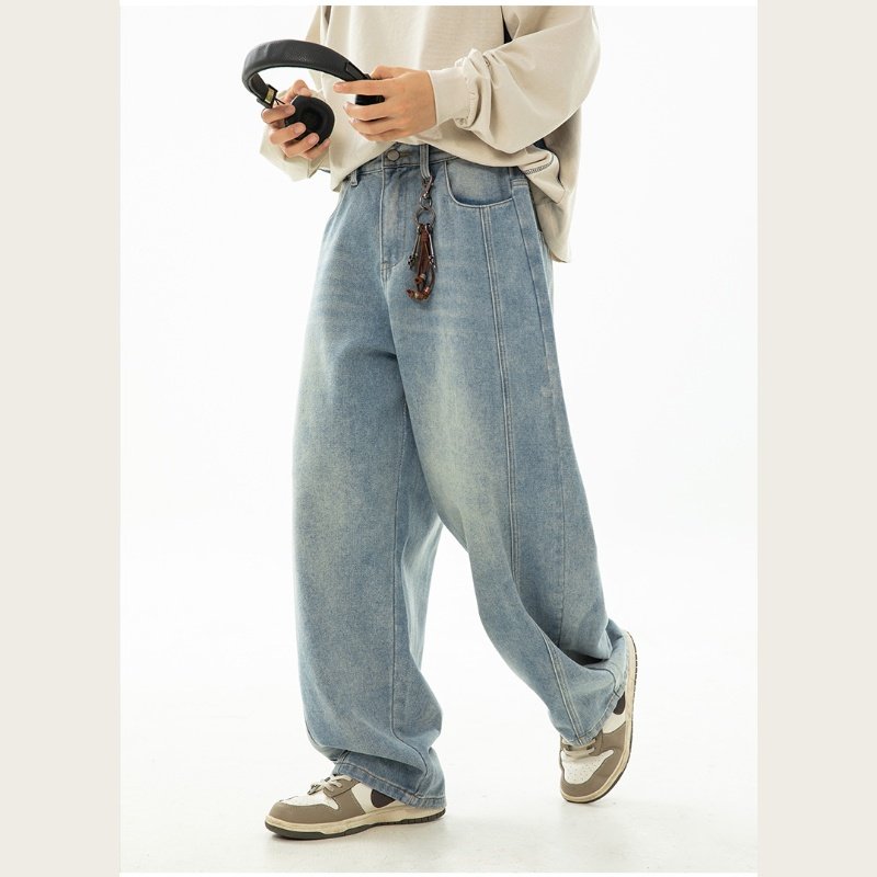美式风镰刀牛仔裤男生炸街痞帅复古水洗廓形青少年弯刀裤宽松长裤