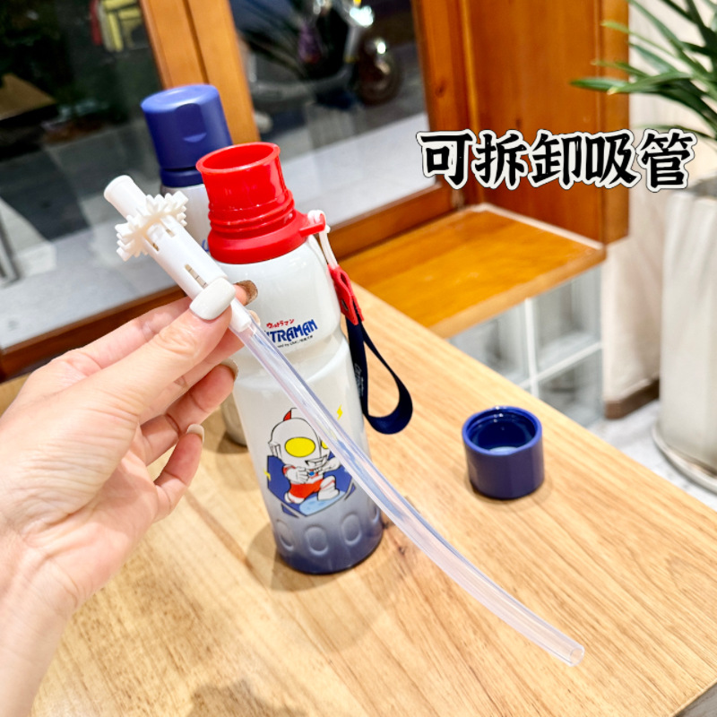 奥特曼真空保温杯户外骑行吸管杯吊带水壶双用学生小口杯子节日