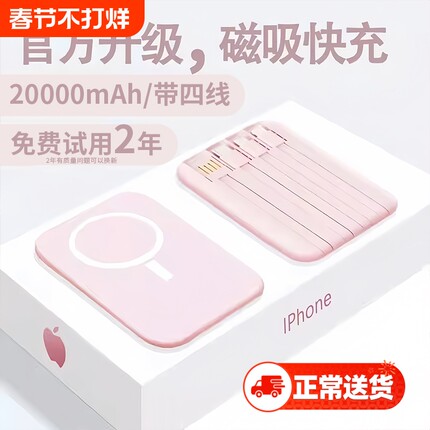 磁吸充电宝自带线20000毫安新国标3C认证2025大容量快充超薄小巧便携无线适用苹菓17专用手机有线闪充电源