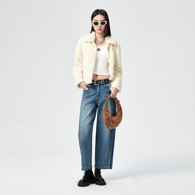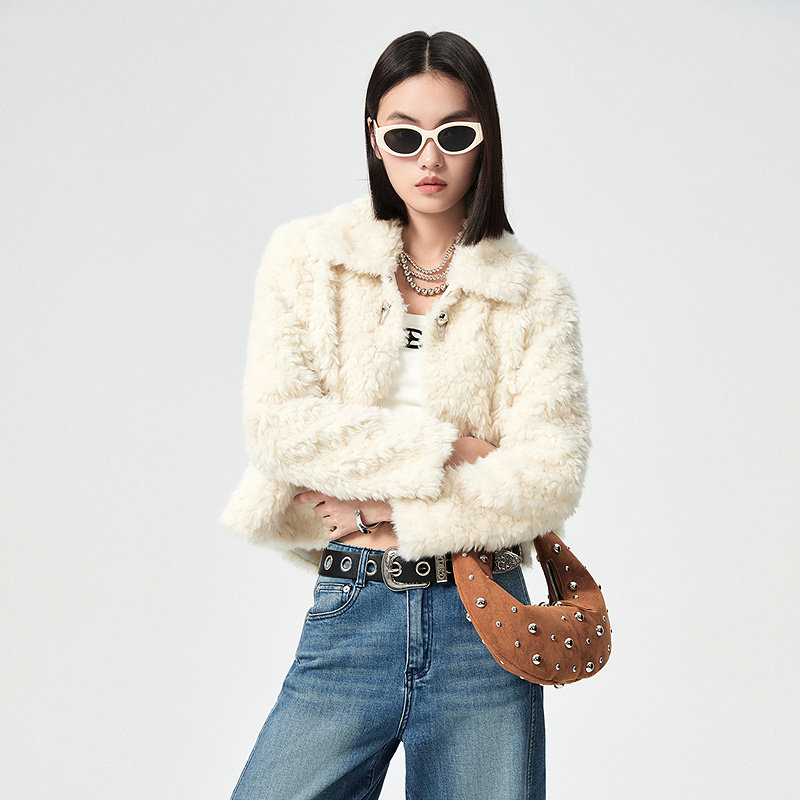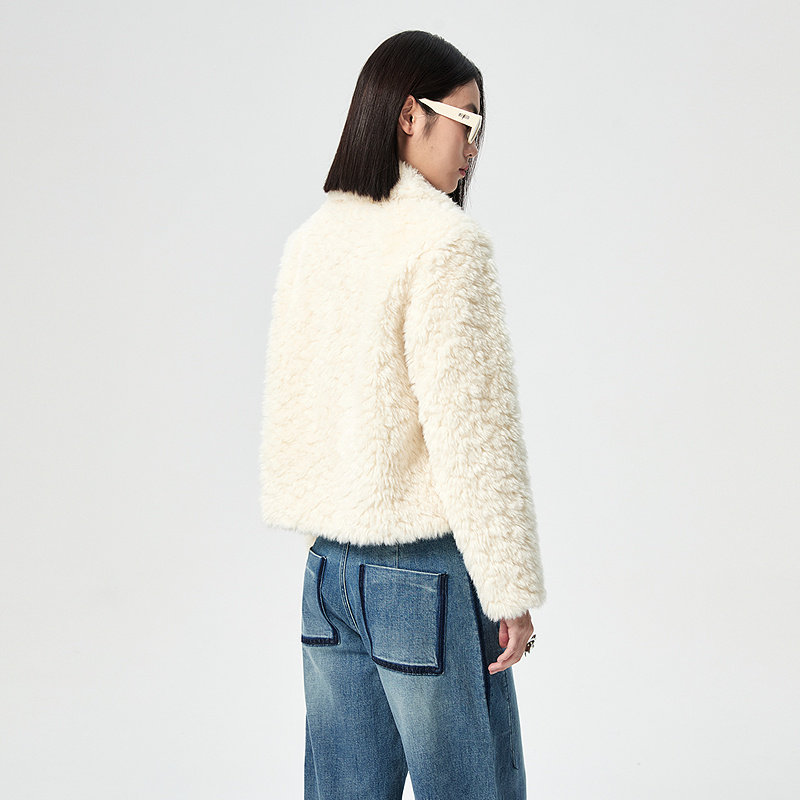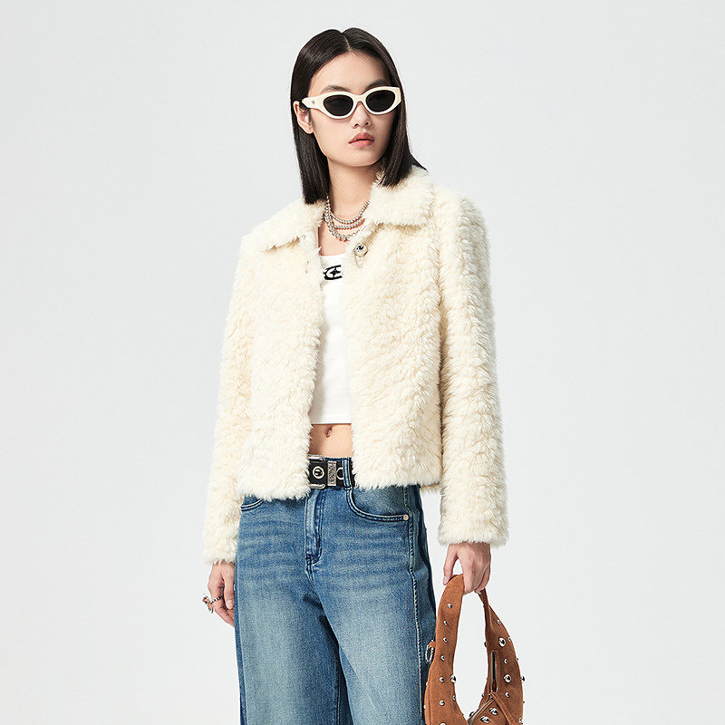 普普风商场同款时尚翻领短款外套软糯松弛感时髦短款仿皮草外套女