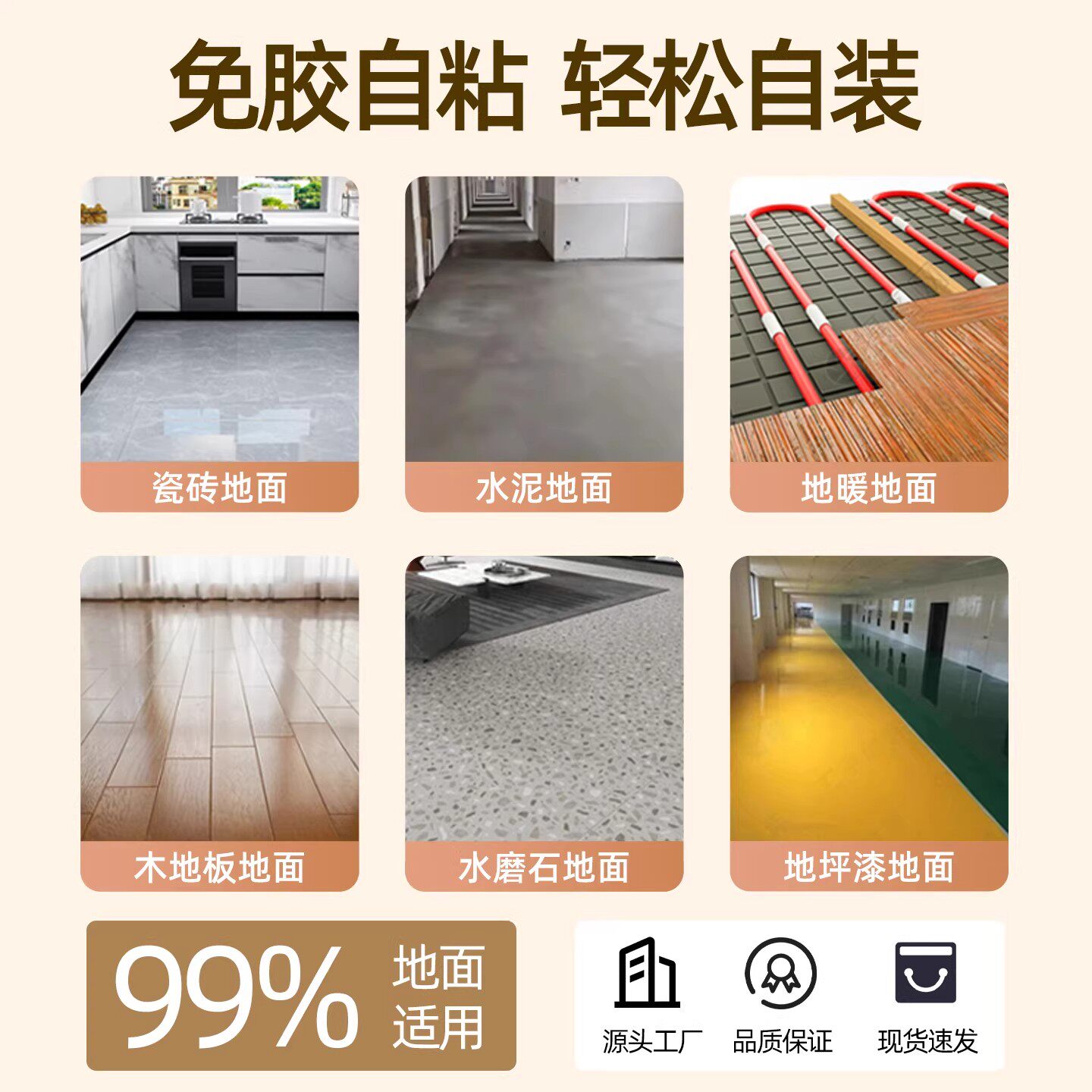 PVC地板贴自粘加厚耐磨防水防滑石塑塑胶地板水泥地直接铺地垫