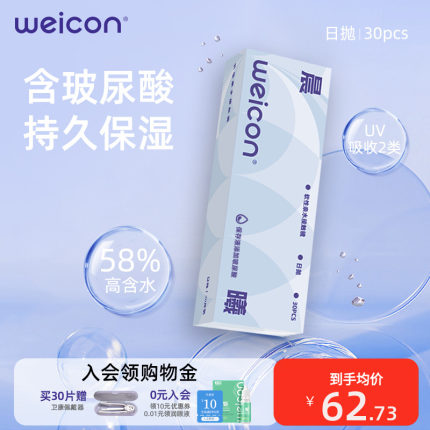 [新品]卫康玻尿酸隐形眼镜日抛30片透明水凝胶防uv正品官方旗舰店