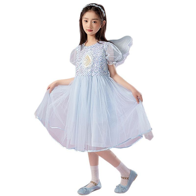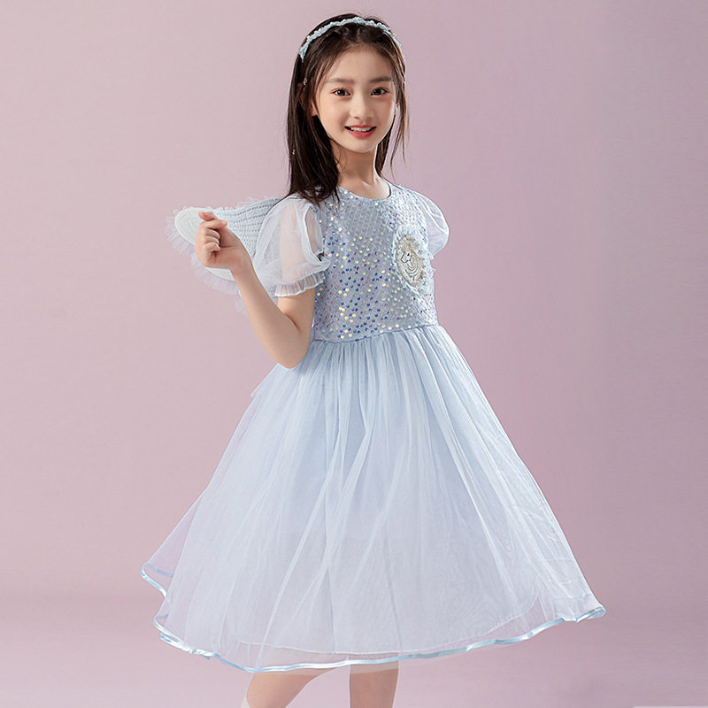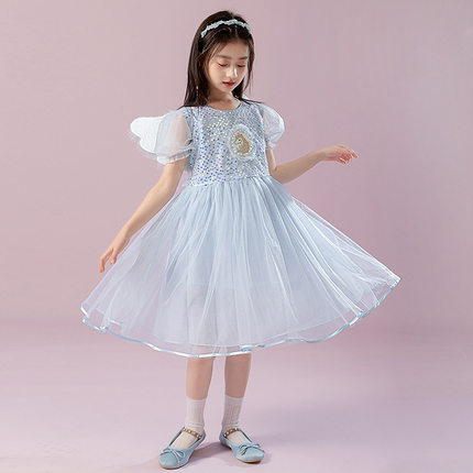 女童公主纱裙夏季新款时尚亮片连衣裙表演礼服洋气艾莎裙