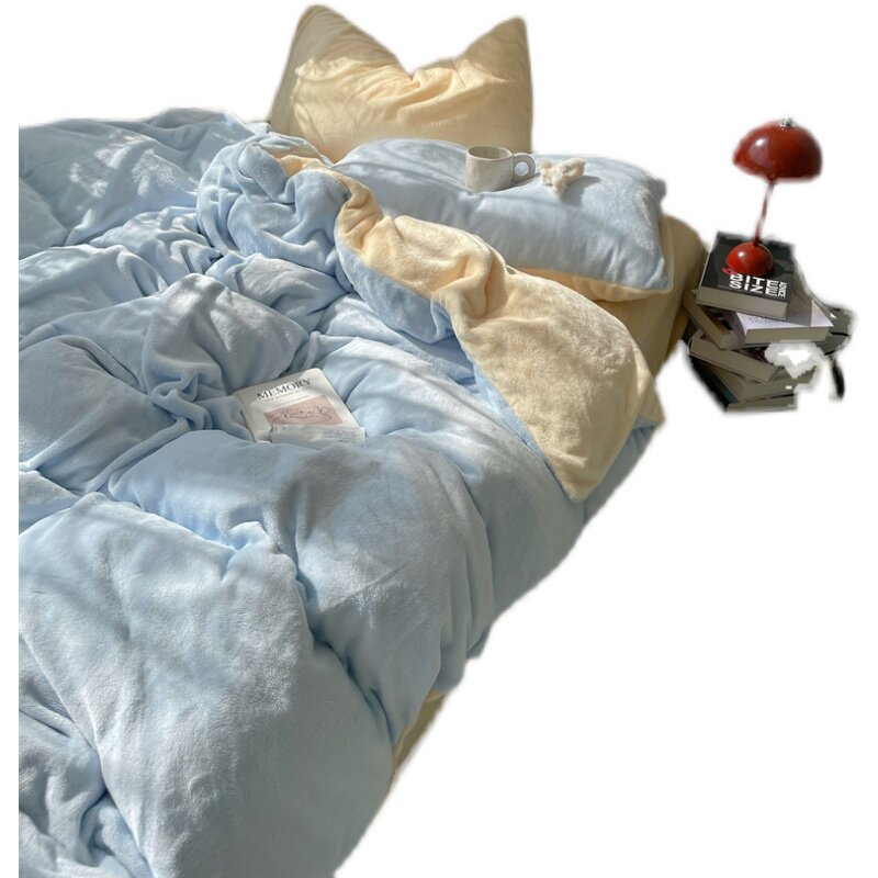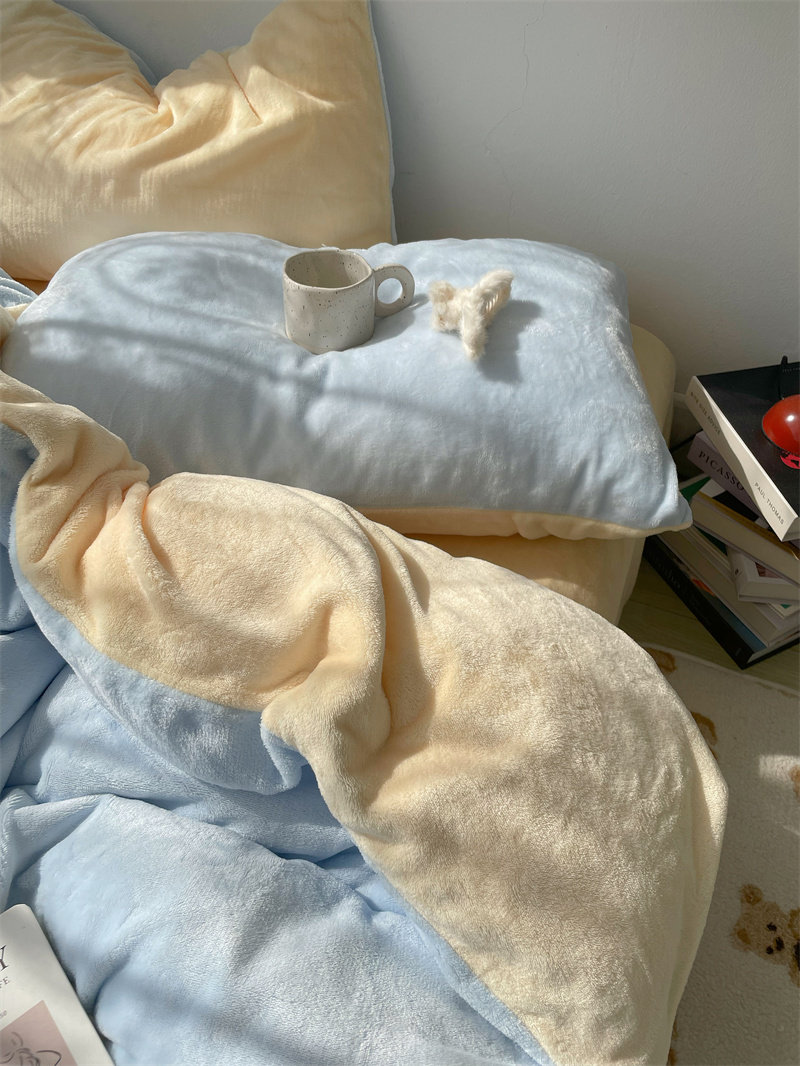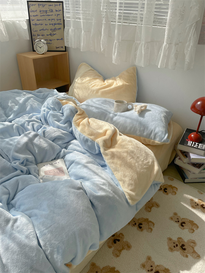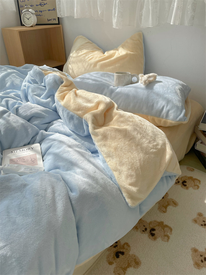梨梦 芝士蓝蓝~秋冬加厚保暖牛奶绒四件套珊瑚绒床单被套床上用品