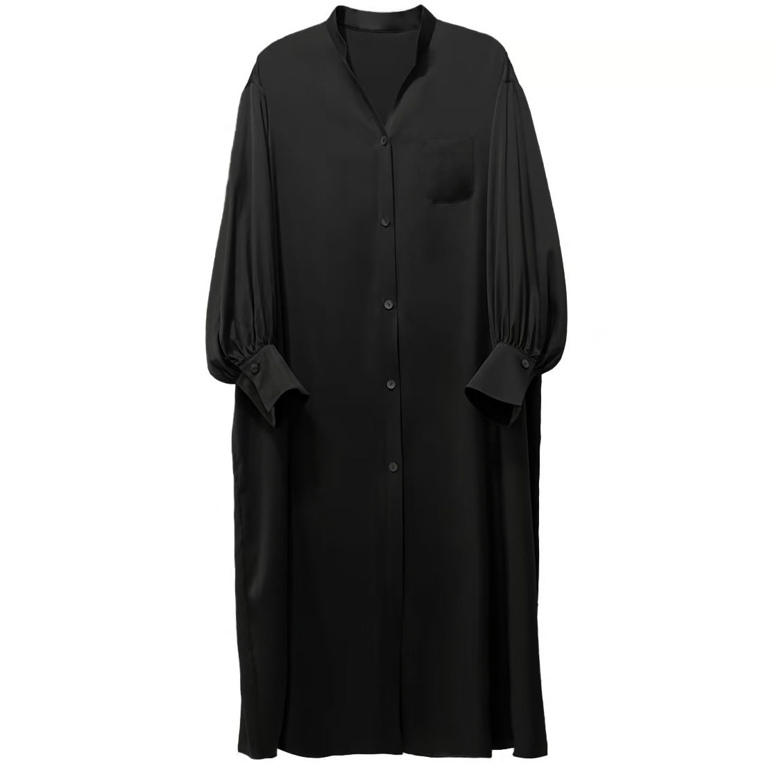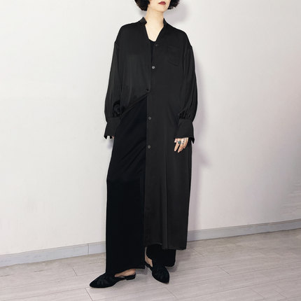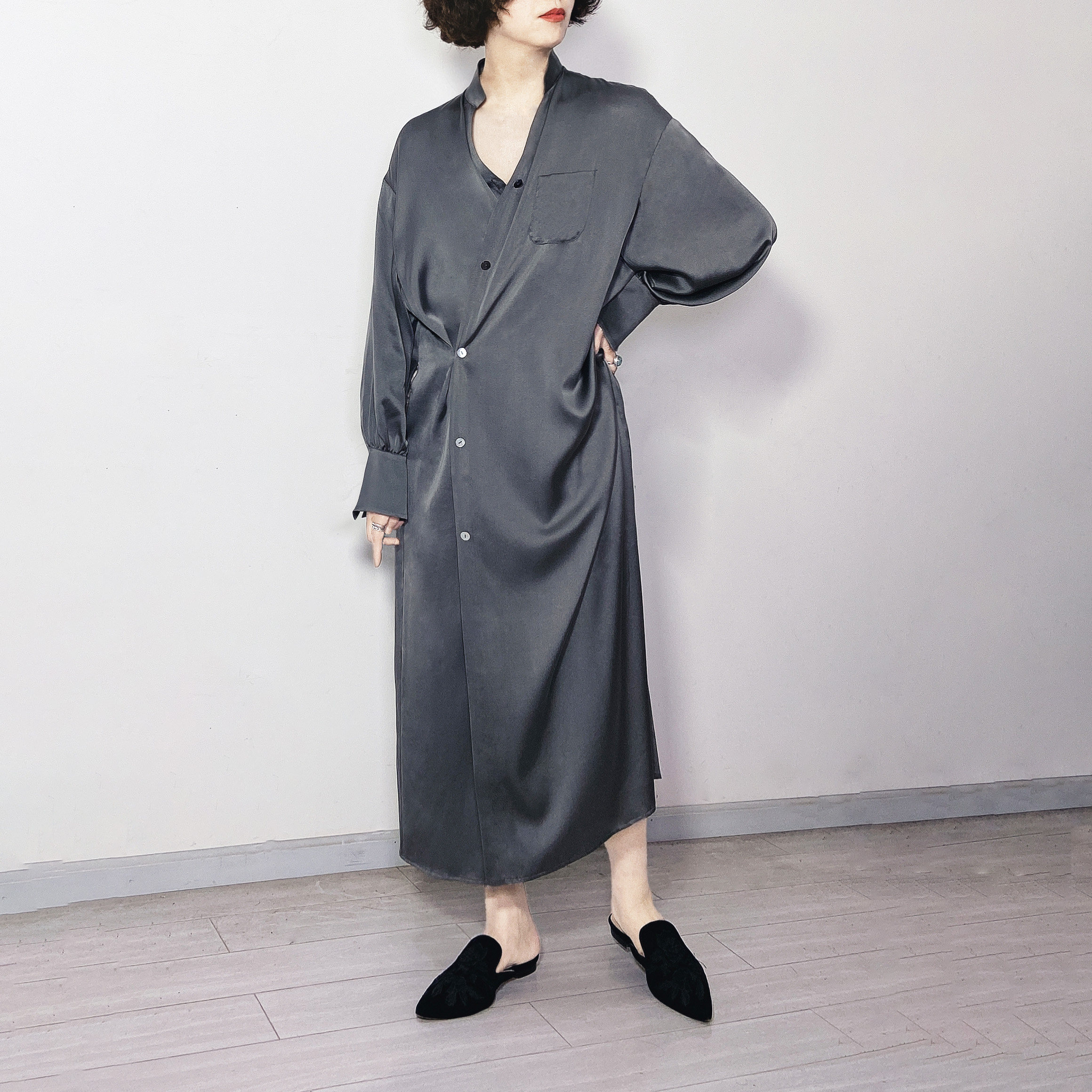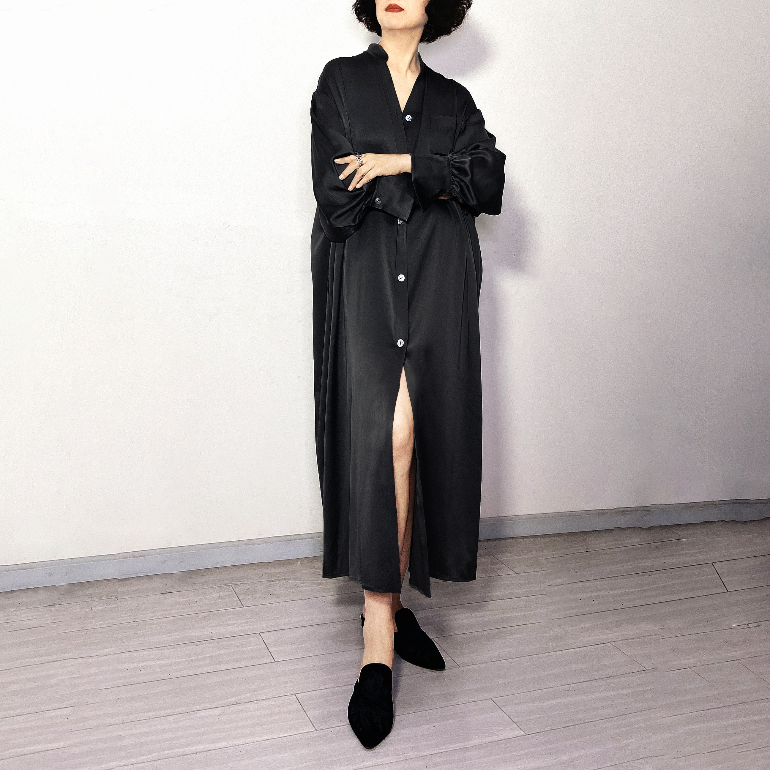 陈小满原创设计重磅砂洗真丝素绉缎v领衬衫式连衣裙女2026春新款