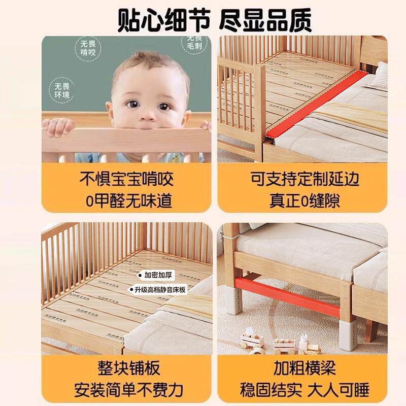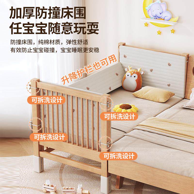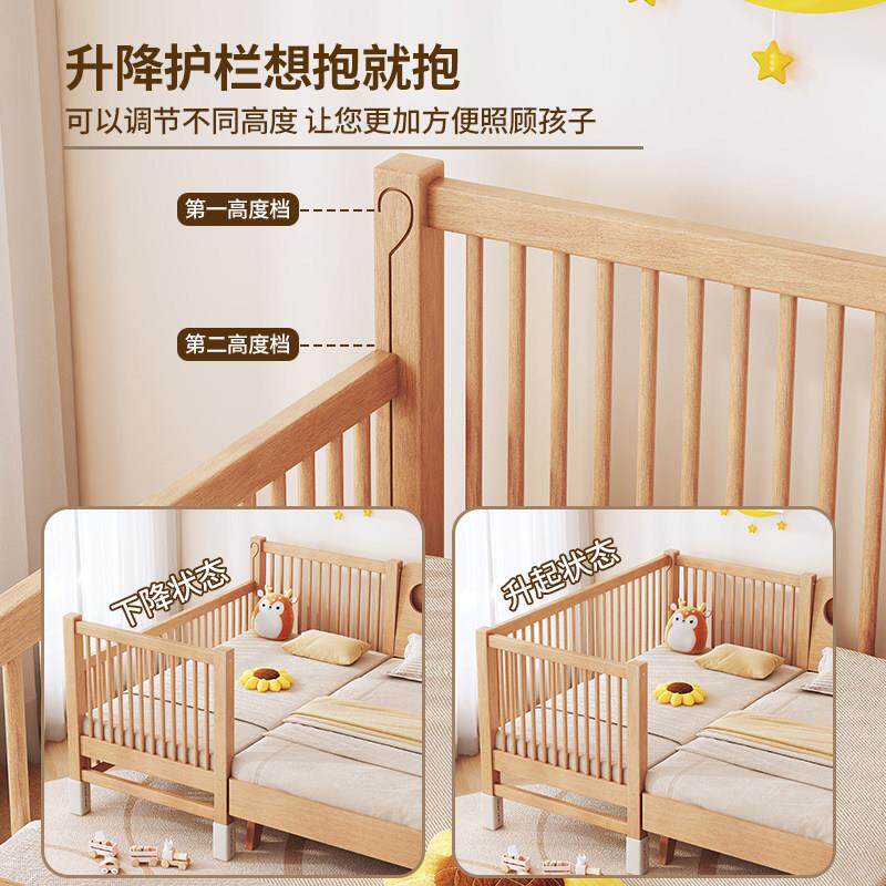 实木儿童床婴儿拼接床可升降护栏宝宝加宽床定制边床无缝平接大床