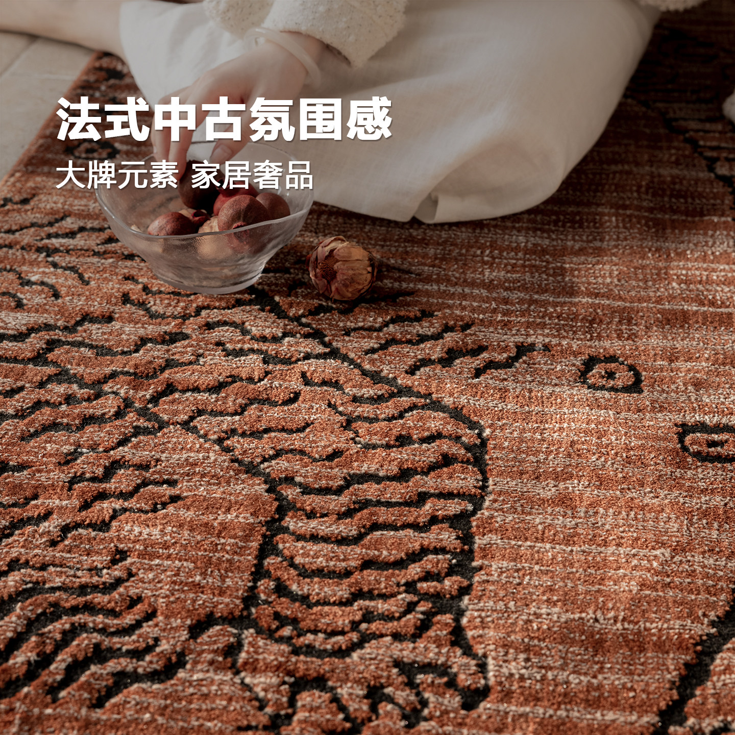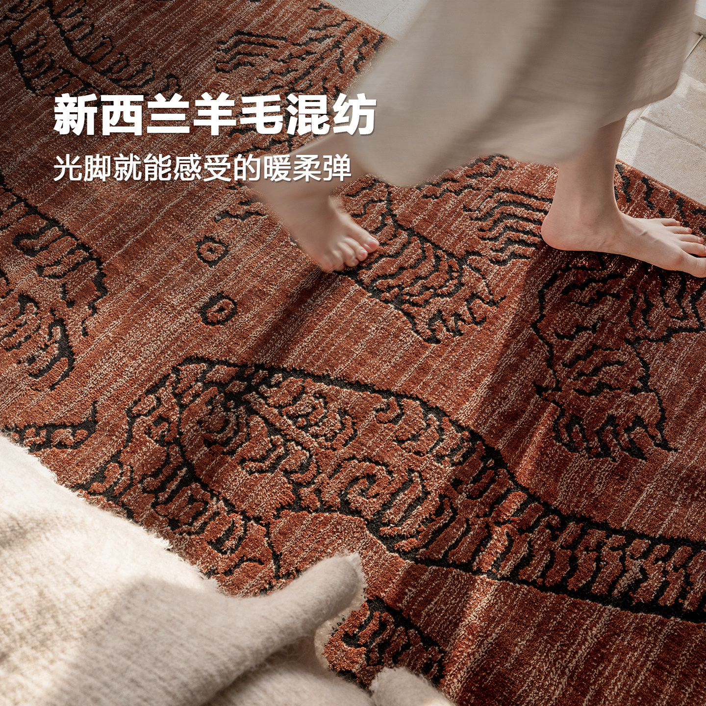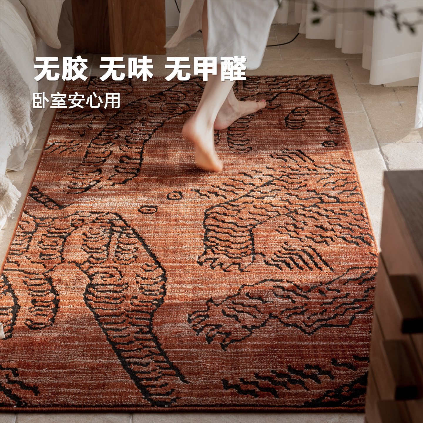 古臻东方藏虎床边地毯 高级感复古红色无胶羊毛客厅美拉德卧室毯