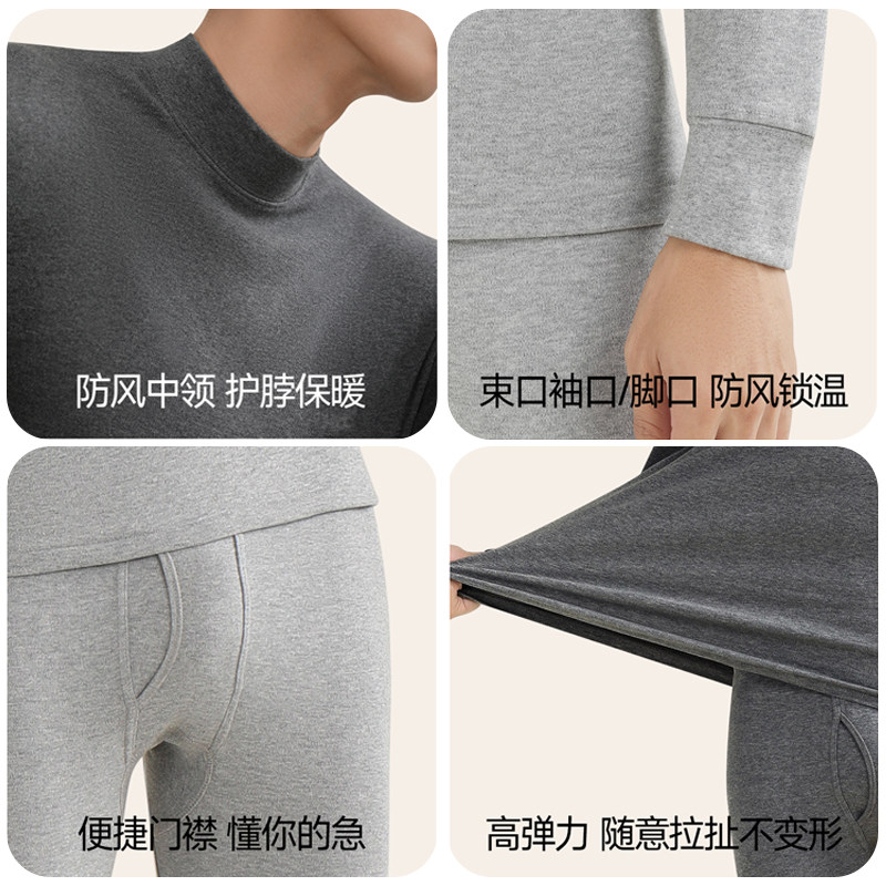 浪莎中领纯棉秋衣男防风保暖抗菌