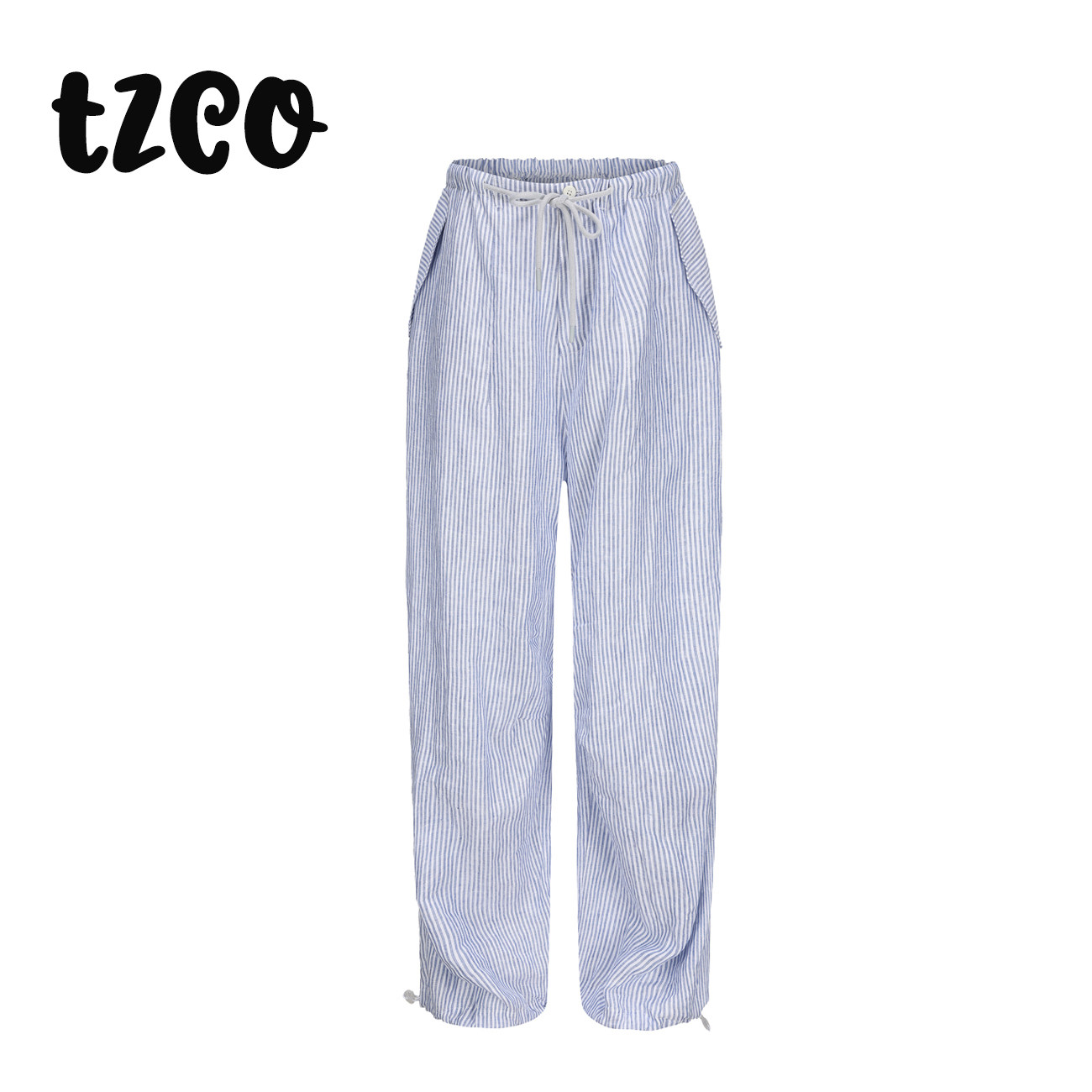 TZCO 24夏「条纹亚麻裤」宽松休闲经典蓝白条纹百搭工装裤休闲裤