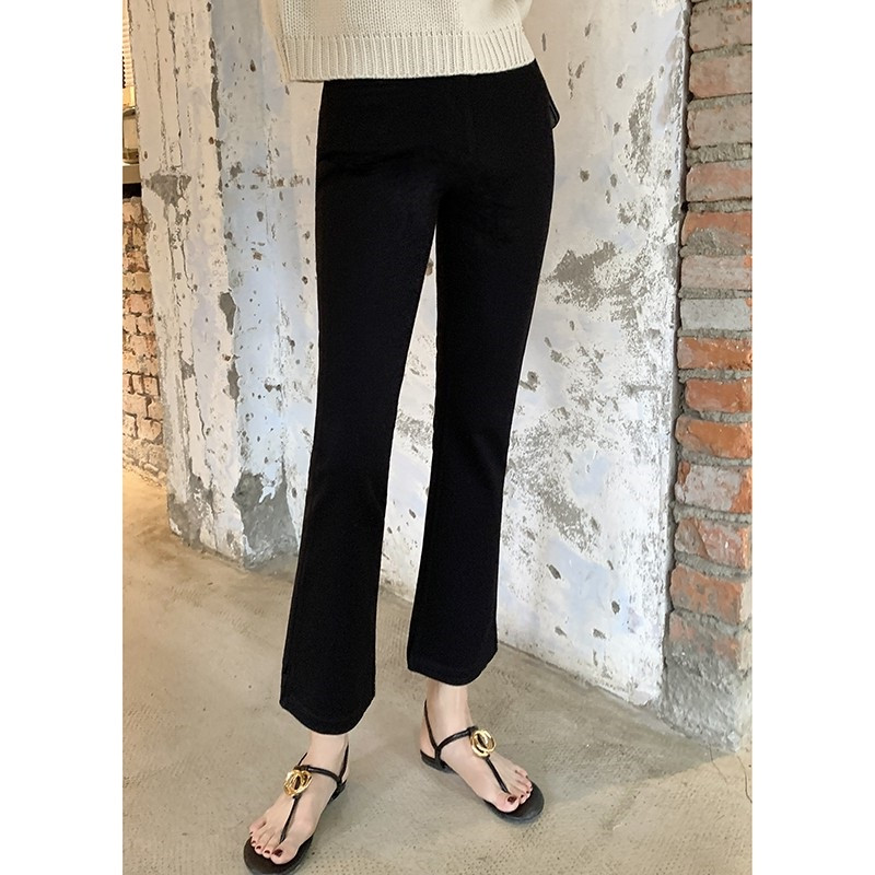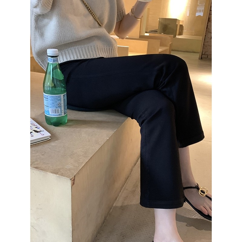 喇叭裤女春夏新款高腰九分裤修身显瘦春夏休闲西装宽松黑色微喇裤