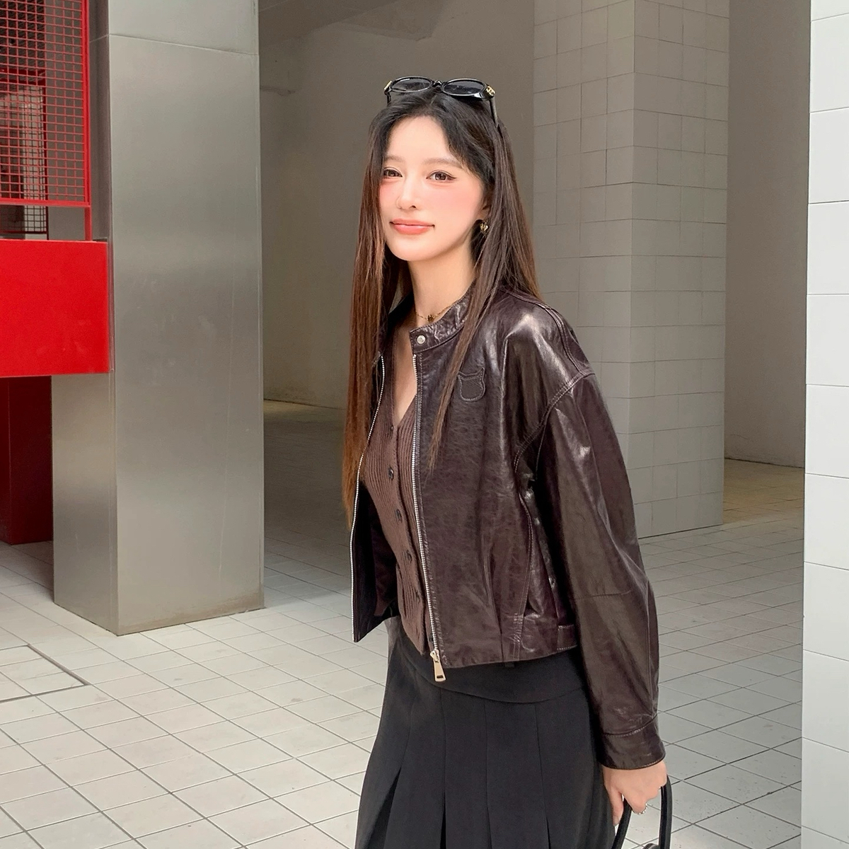 云朵款真皮皮衣女短款油蜡绵羊皮休闲夹克外套宽松皮衣GSFW230