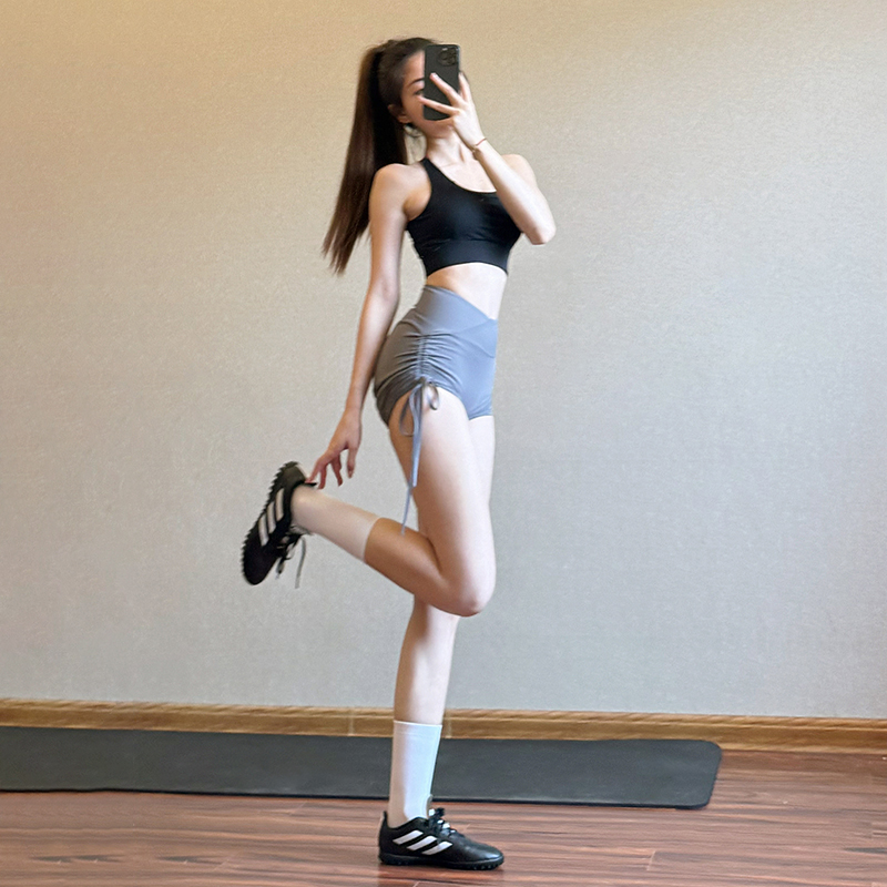 欧美高腰蜜桃臀健身短裤女绑带