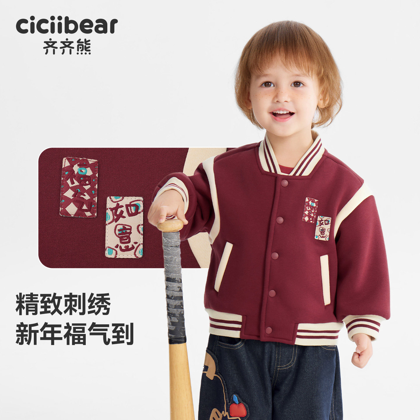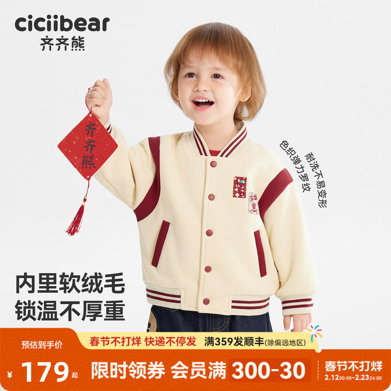 齐齐熊男童棒球服外套新年款秋冬