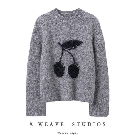 不可mo仿的篙质感!秋冬新品纯山羊绒提花樱桃圆领羊绒毛衣针织衫