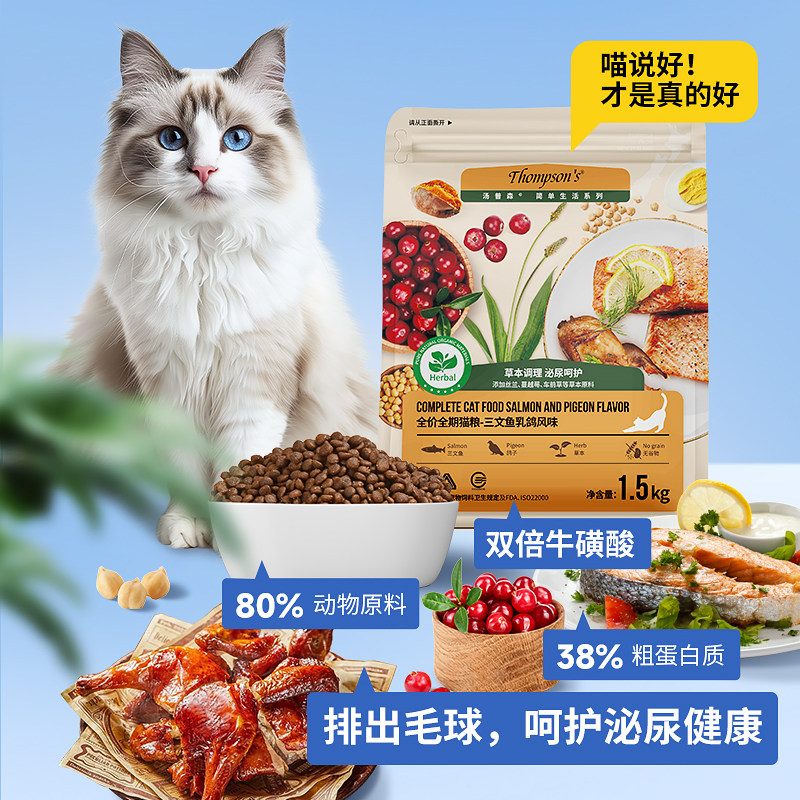Thompson's汤普森猫粮三文鱼乳鸽味全期价主食粮 草本调理