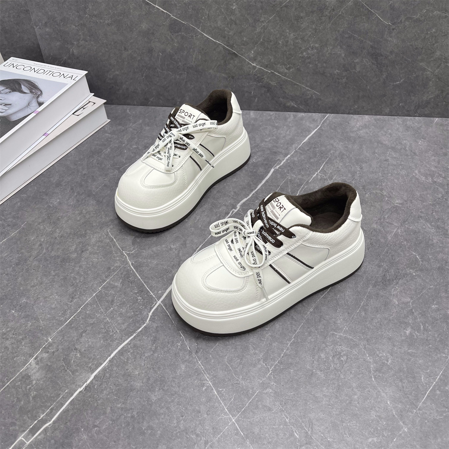 真皮厚底面包小白鞋女2025秋冬新款加绒保暖系带百搭增高休闲板鞋