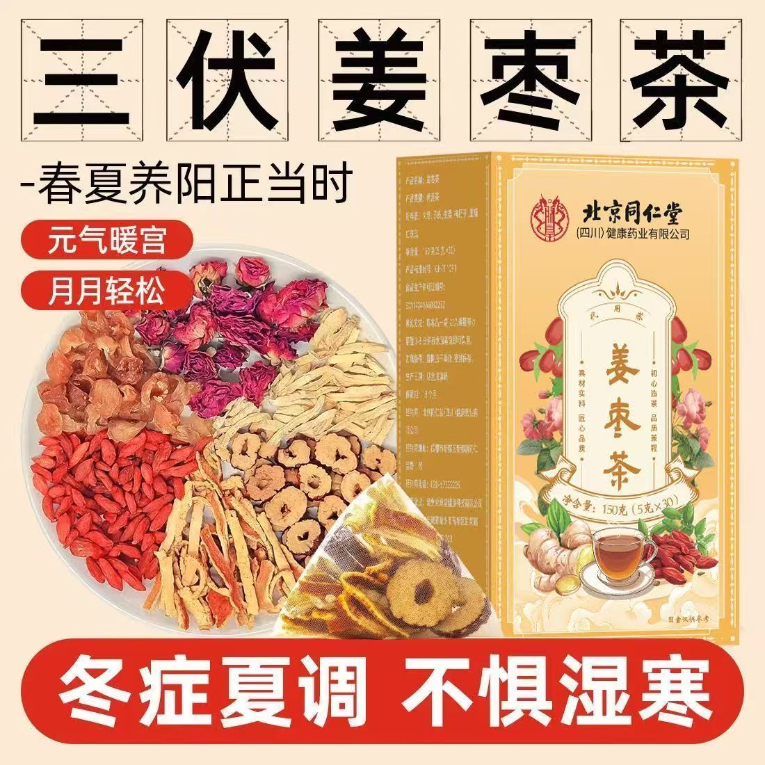 北京同仁堂三伏天去寒暖胃养生茶调理红枣生姜养生官方旗舰店