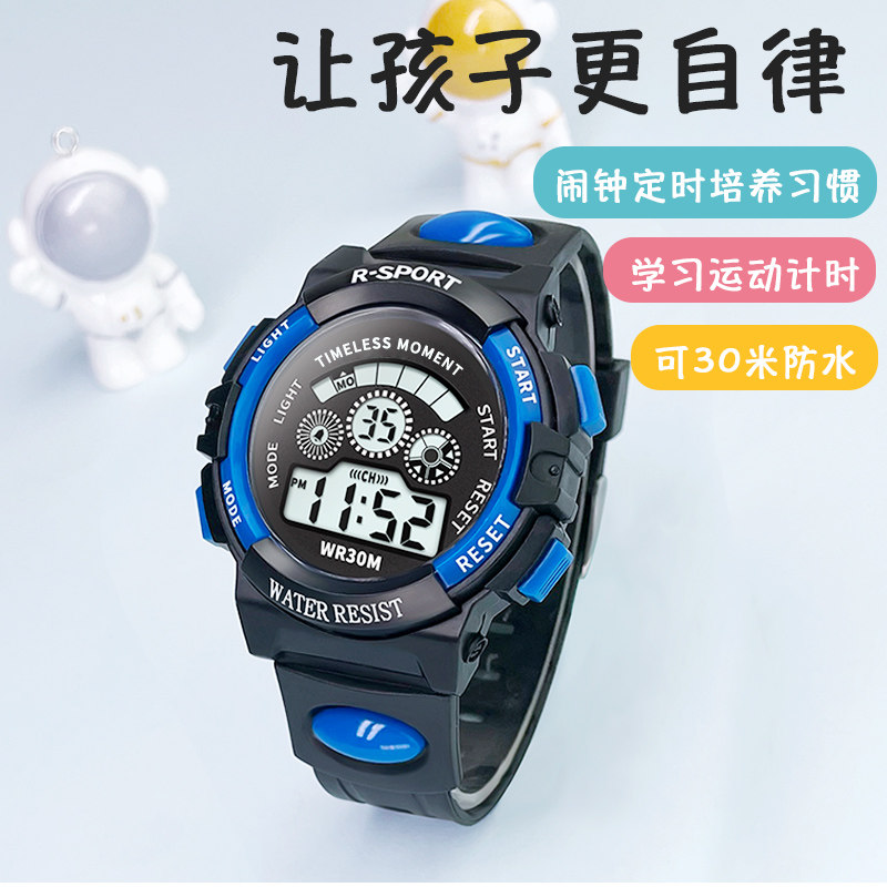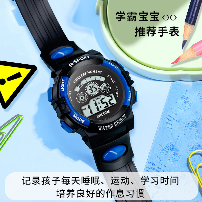 儿童电子手表男孩小学生表女潮流时尚青少年夜光闹钟防水防摔防震