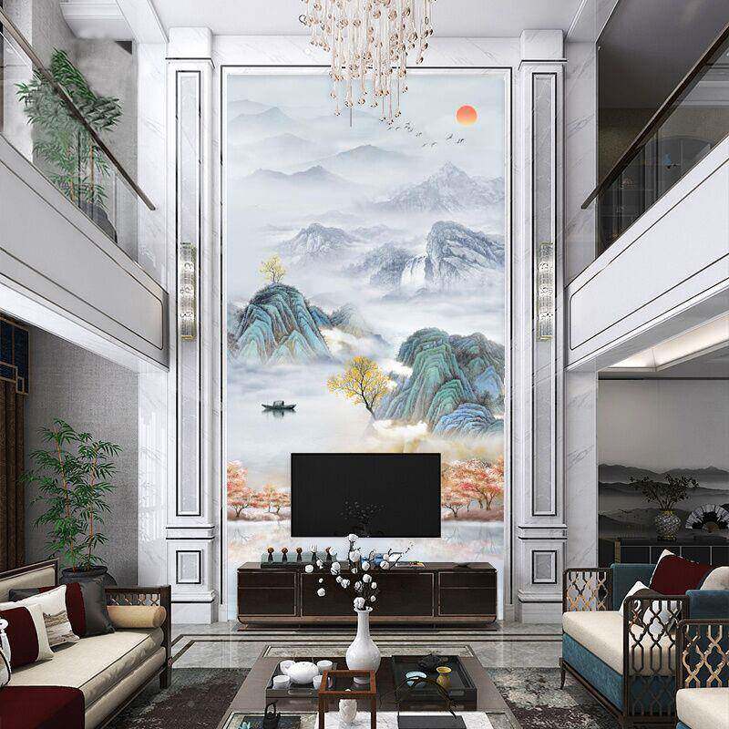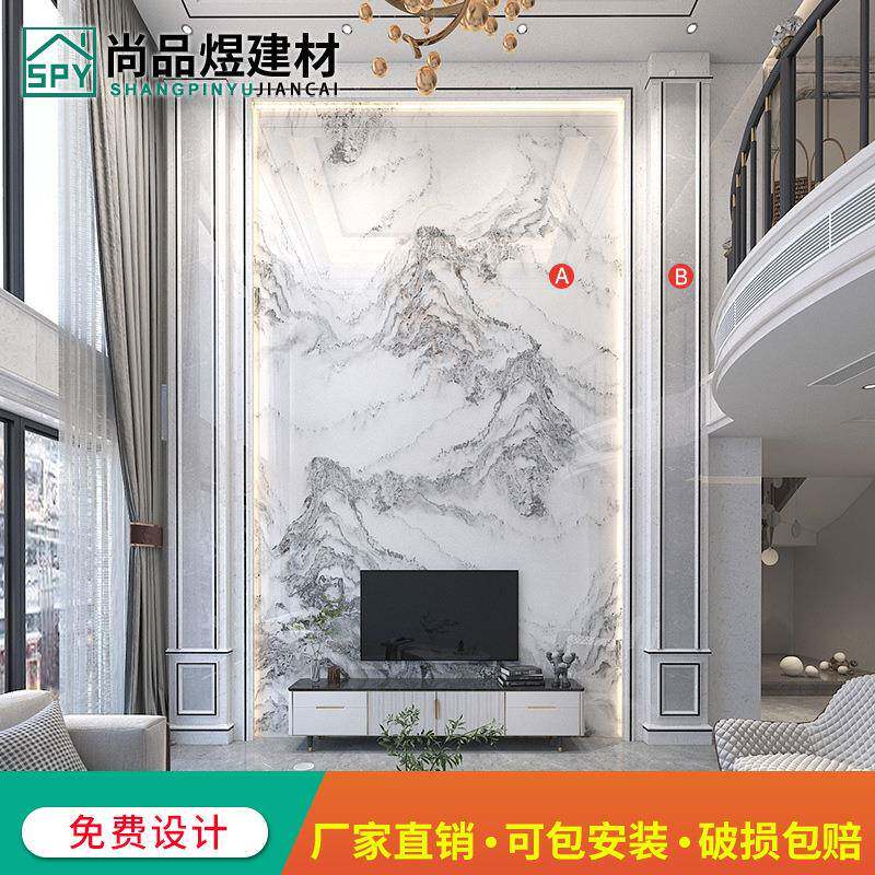 中楼复式楼电视背景墙岩板支持定制新瓷砖微晶大理石客厅楼中挑式