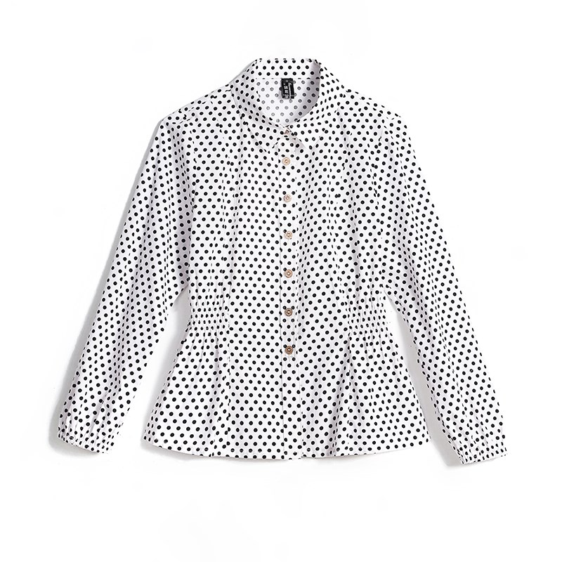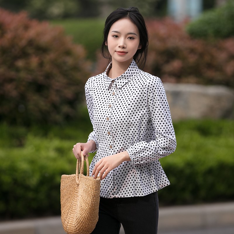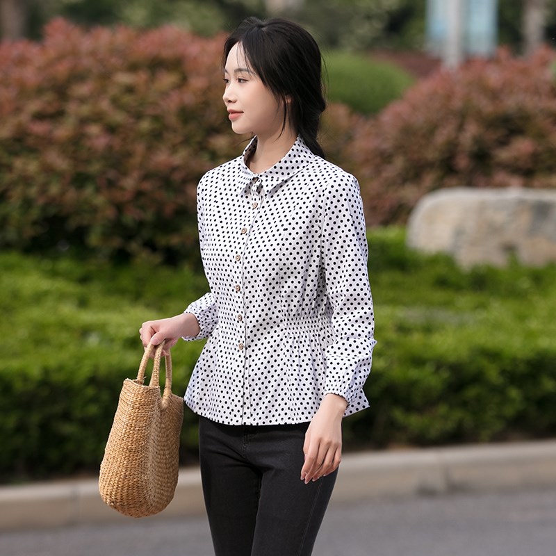 2024春夏秋新款百搭文艺纯棉白色波点衬衫女修身显瘦长袖上衣开衫