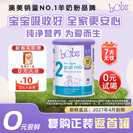 【7天无忧】澳洲原装bubs婴幼儿A2羊奶粉宝宝DHA双益生菌二段400g