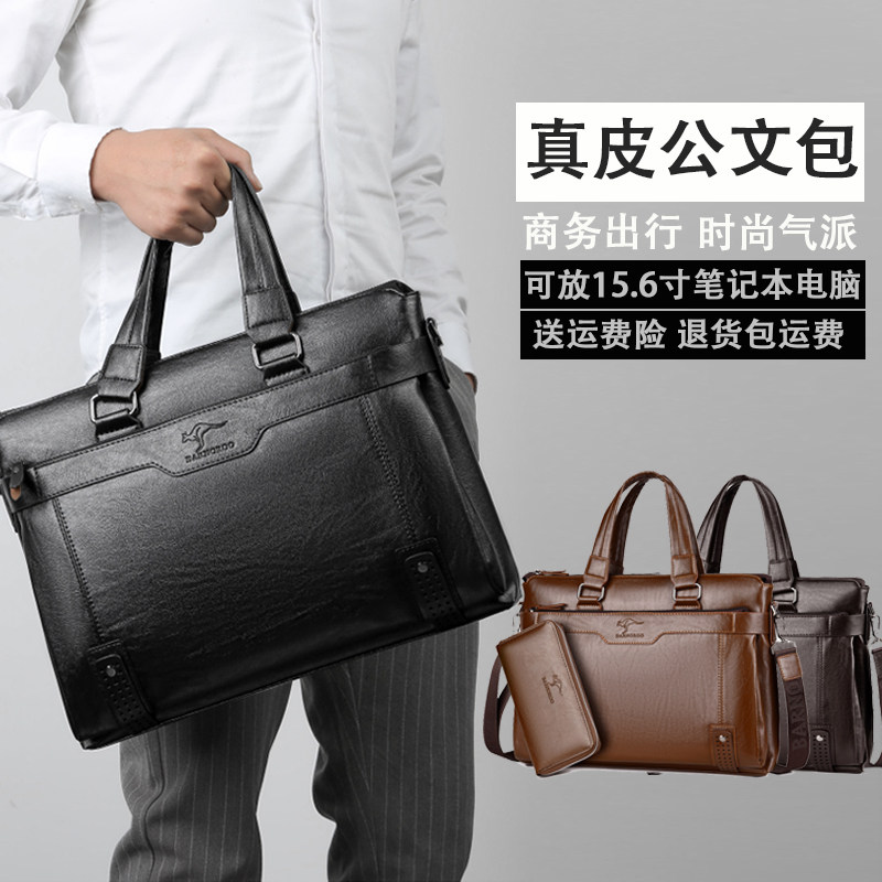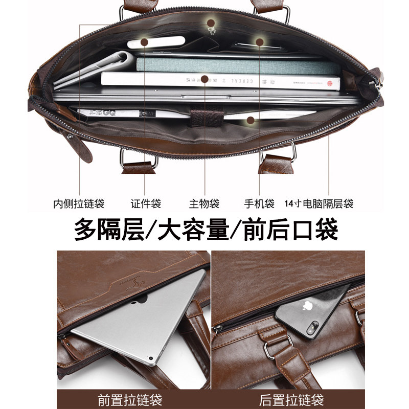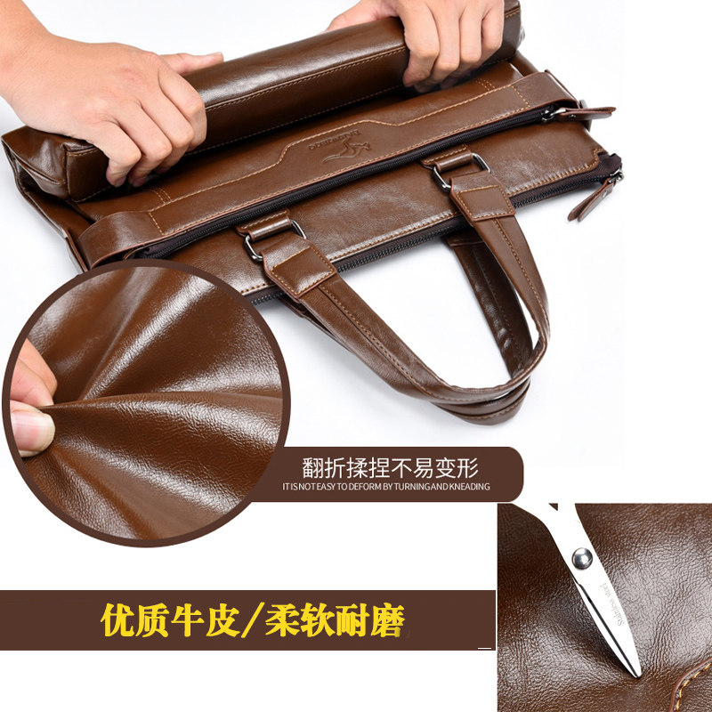 公文包男款商务真皮大容量男士手提包横款牛皮休闲出差手提电脑包