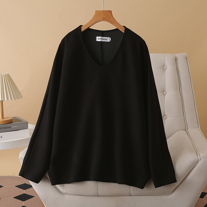 早秋大码慵懒风卫衣女休闲百搭蝙蝠袖V领上衣胖mm遮肚子长袖T恤衫