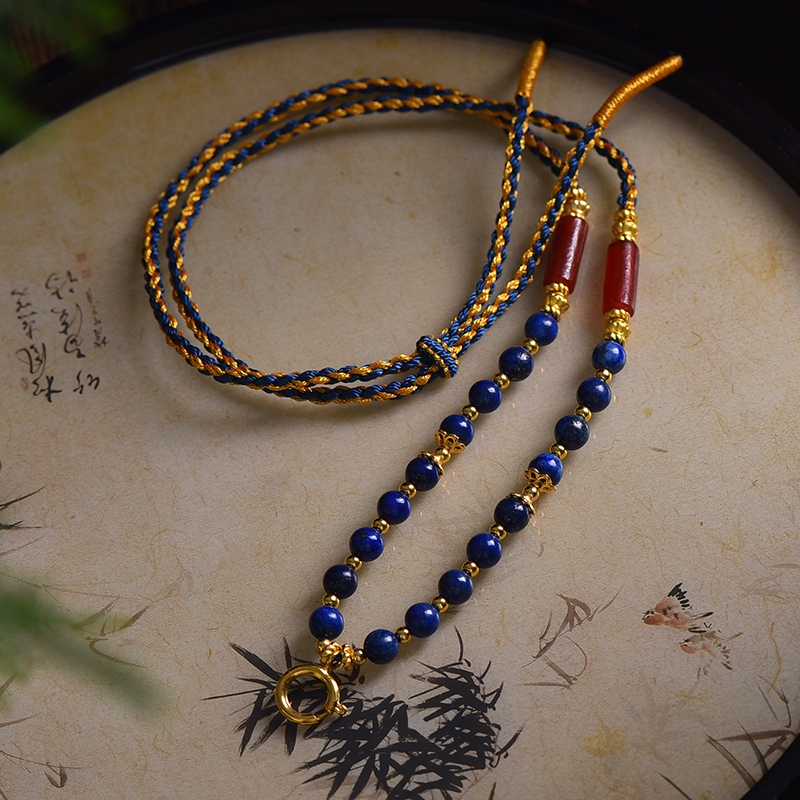 藏式唐卡项链绳泰国佛牌挂脖链青金石水晶珠链文玩万能扣吊坠绳子