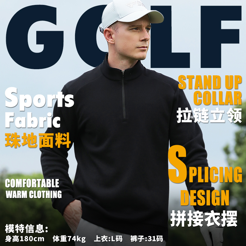 PGM 新款高尔夫服装男士秋季长袖t恤外套上衣拉链立领男装polo衫