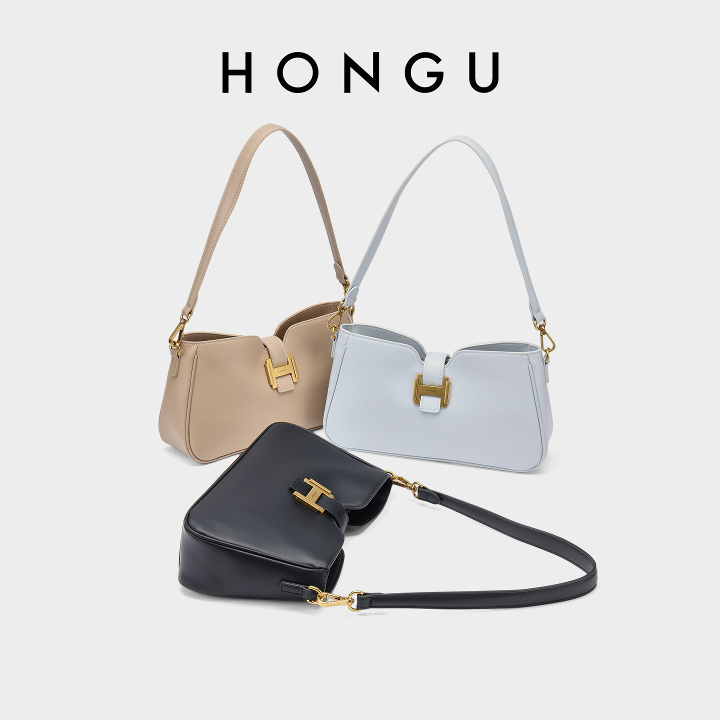 HONGU/红谷简约百搭新款腋下包通勤女士包牛皮包包女小众时髦款