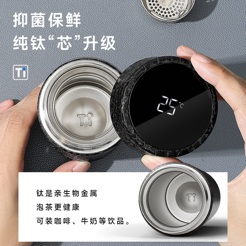 物生物纯钛保温杯男士智能显温高端级商务礼盒茶水分离新款水杯子