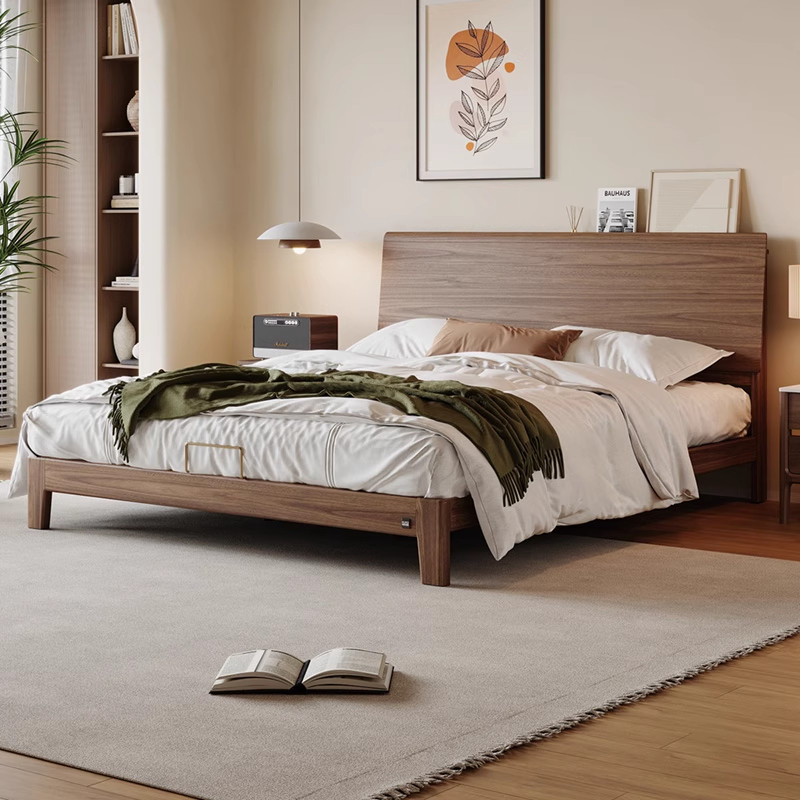 顾家家居实木中古风乌金木全实木床床头储物小户型双人床1.8m大床