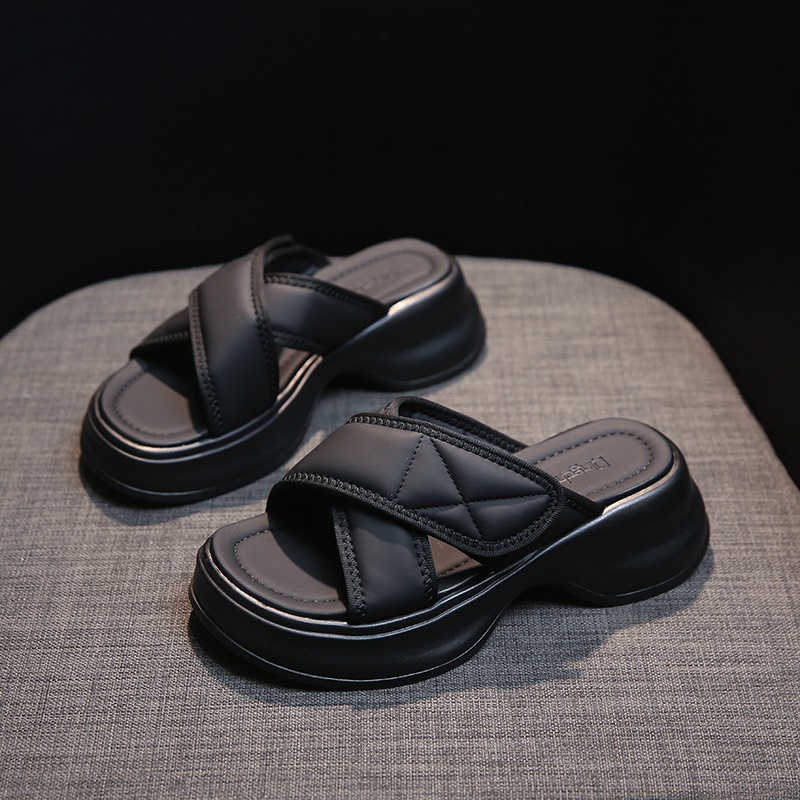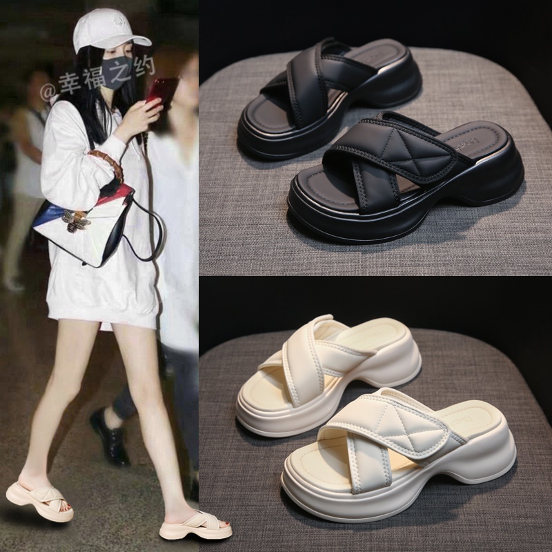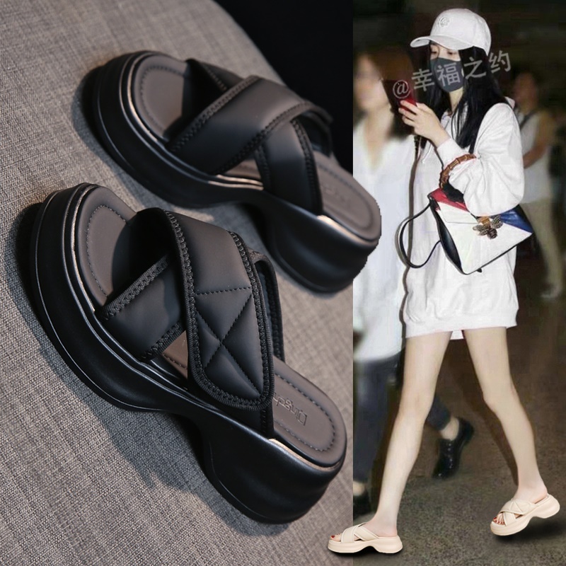 2025夏季新款厚底增高拖鞋女款沙滩鞋子海边坡跟懒人网红凉拖外穿