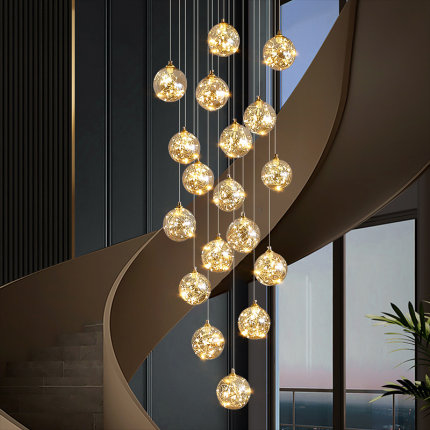 满天星楼梯灯长吊灯旋转复式楼现代简约轻奢别墅loft公寓客厅吊灯