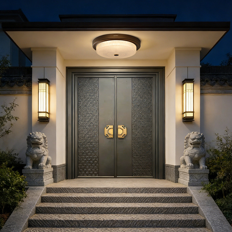 新中式吸顶灯阳光房玻璃门口美式卧室阳台灯户外大门感应别墅室外