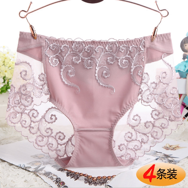 纯棉收腹内裤女士性感新款蕾丝无痕中腰少女提臀女生大码胖mm三角