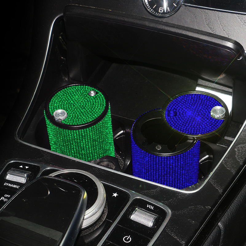 车载烟灰缸创意个性有盖不锈钢金属水钻女士汽车饰品多功能烟灰缸