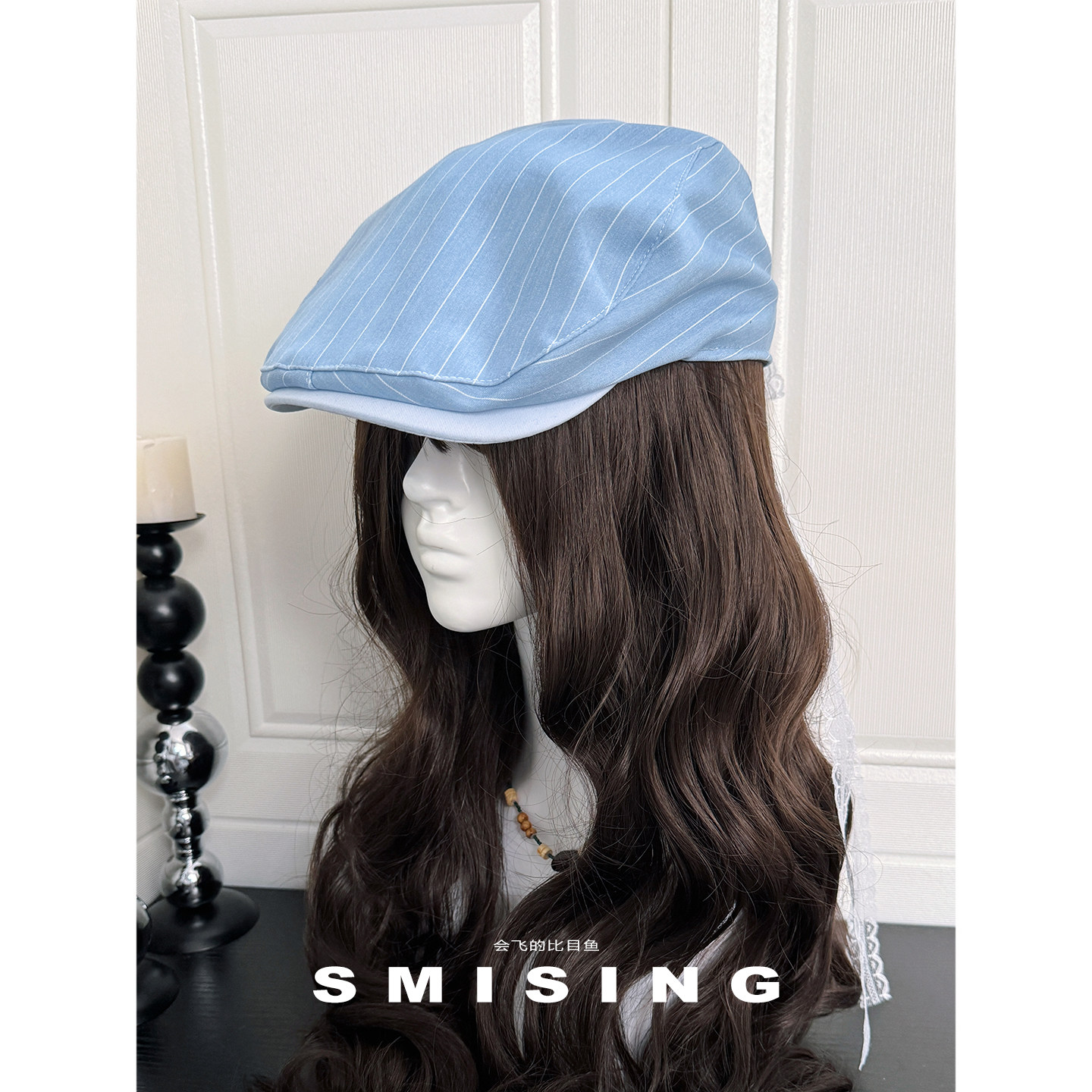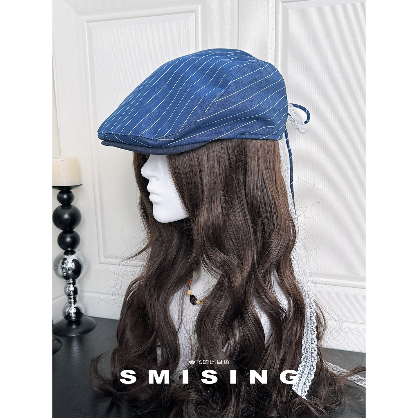 蕾丝飘带蝴蝶结条纹前进帽女春秋季复古文艺百搭显脸小贝雷帽子潮