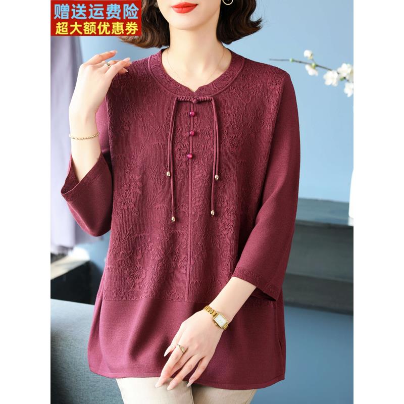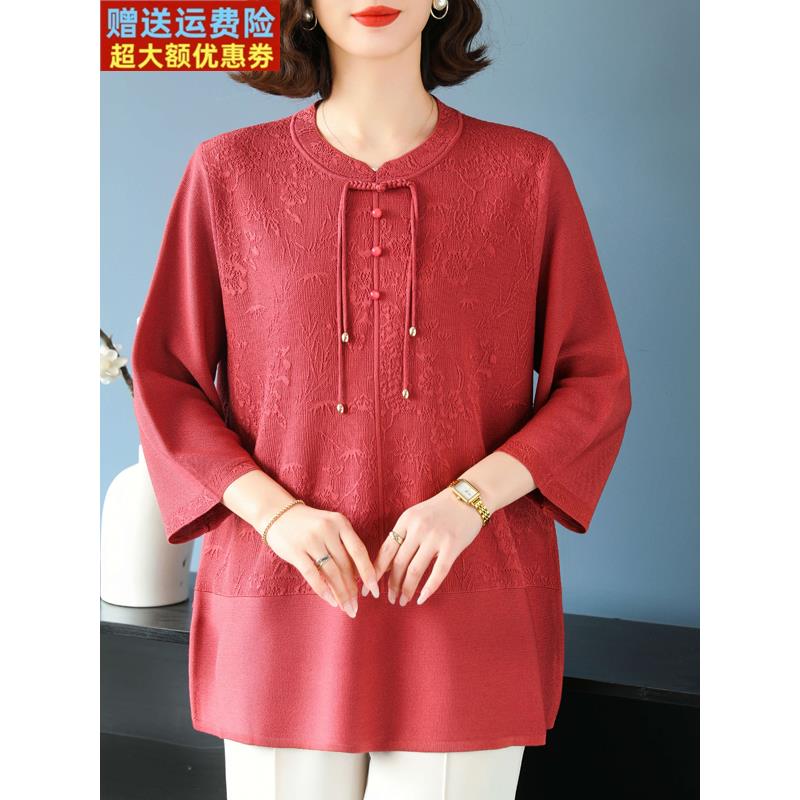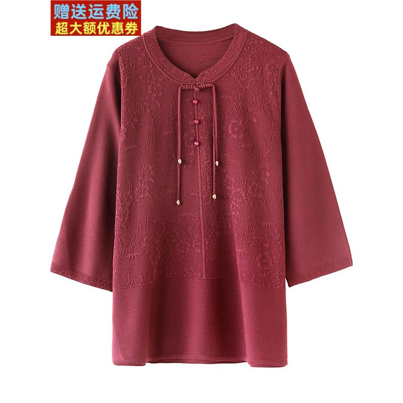 妈妈春秋新中式冰丝上衣中老年特大码女装200斤桑蚕丝洋气高贵T恤