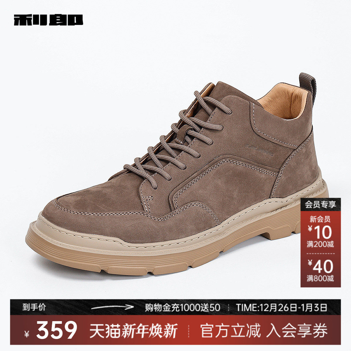 利郎官方春秋牛皮革低帮休闲鞋