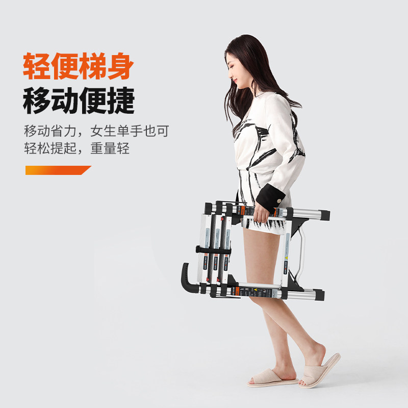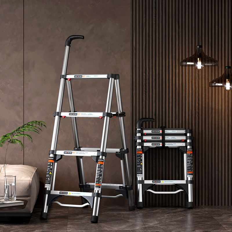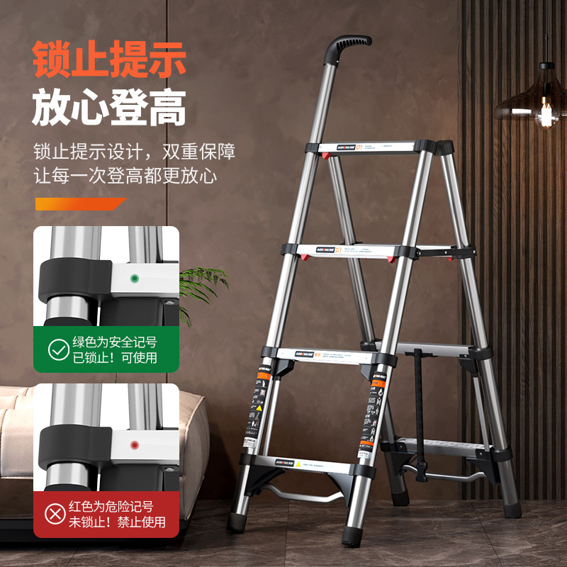 奥鹏不锈钢人字梯子家用伸缩折叠多功能便携升降梯子539C-250D