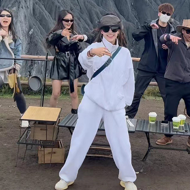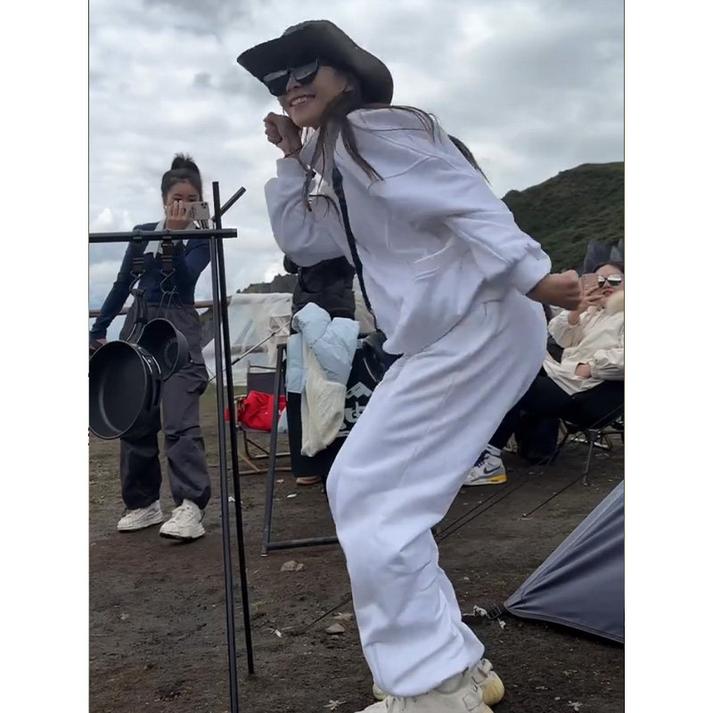 运动套装女春季2025新款欧货时尚炸街洋气白色休闲卫衣卫裤两件套