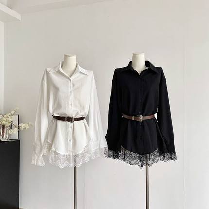 时尚气质白色蕾丝拼接衬衫裙女2025新款初春独特超好看上衣中长款