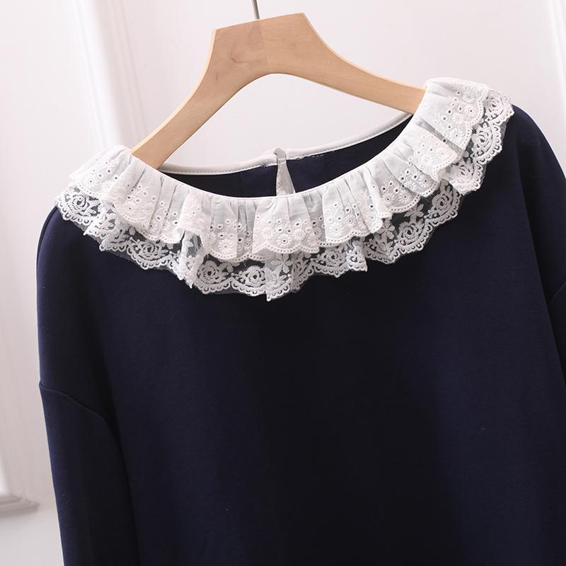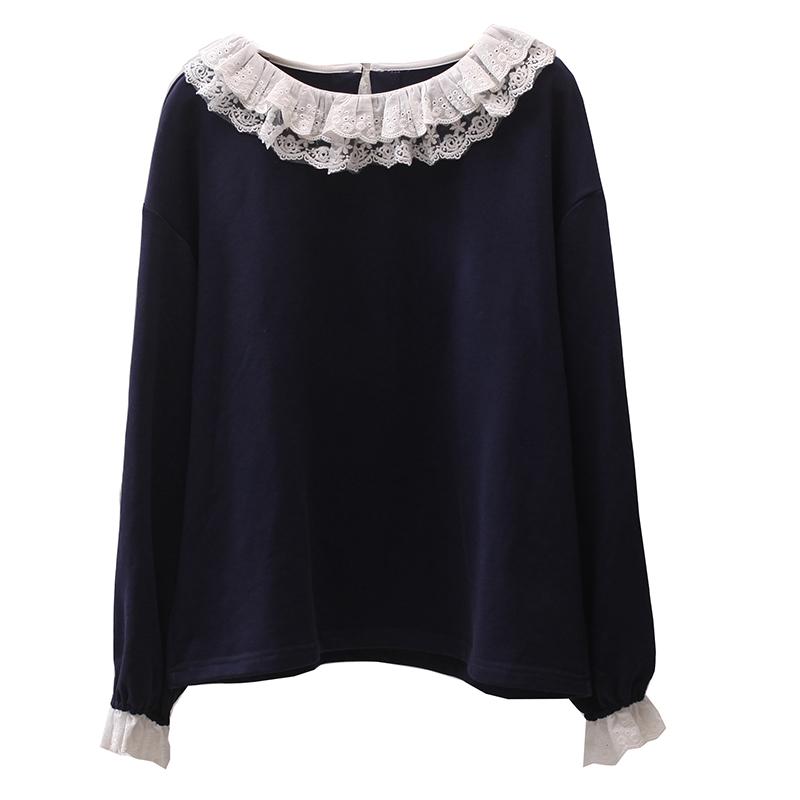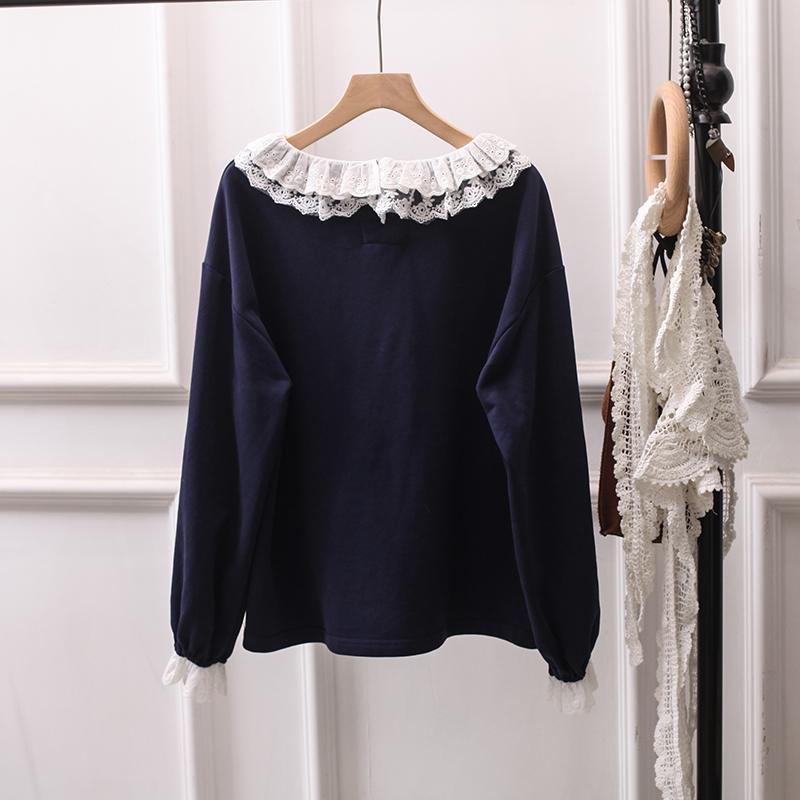 秋冬日系打底衫蕾丝花边卫衣小清新文艺复古百搭宽松设计感女上衣
